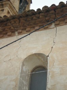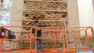 Las patologías detectadas consistían en desprendimientos de enfoscados, debidas a la acción de los agentes atmosféricos y la falta de elementos que asegurasen la trabazón de éstos con la fábrica de tapial.
